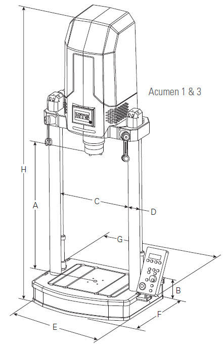6. 試験エリアのエンクロージャ (オプション) を備えたシステムでは、システム全体の寸法として、F 寸法に 98 mm、G 寸法に 45 mmを追加します。 |