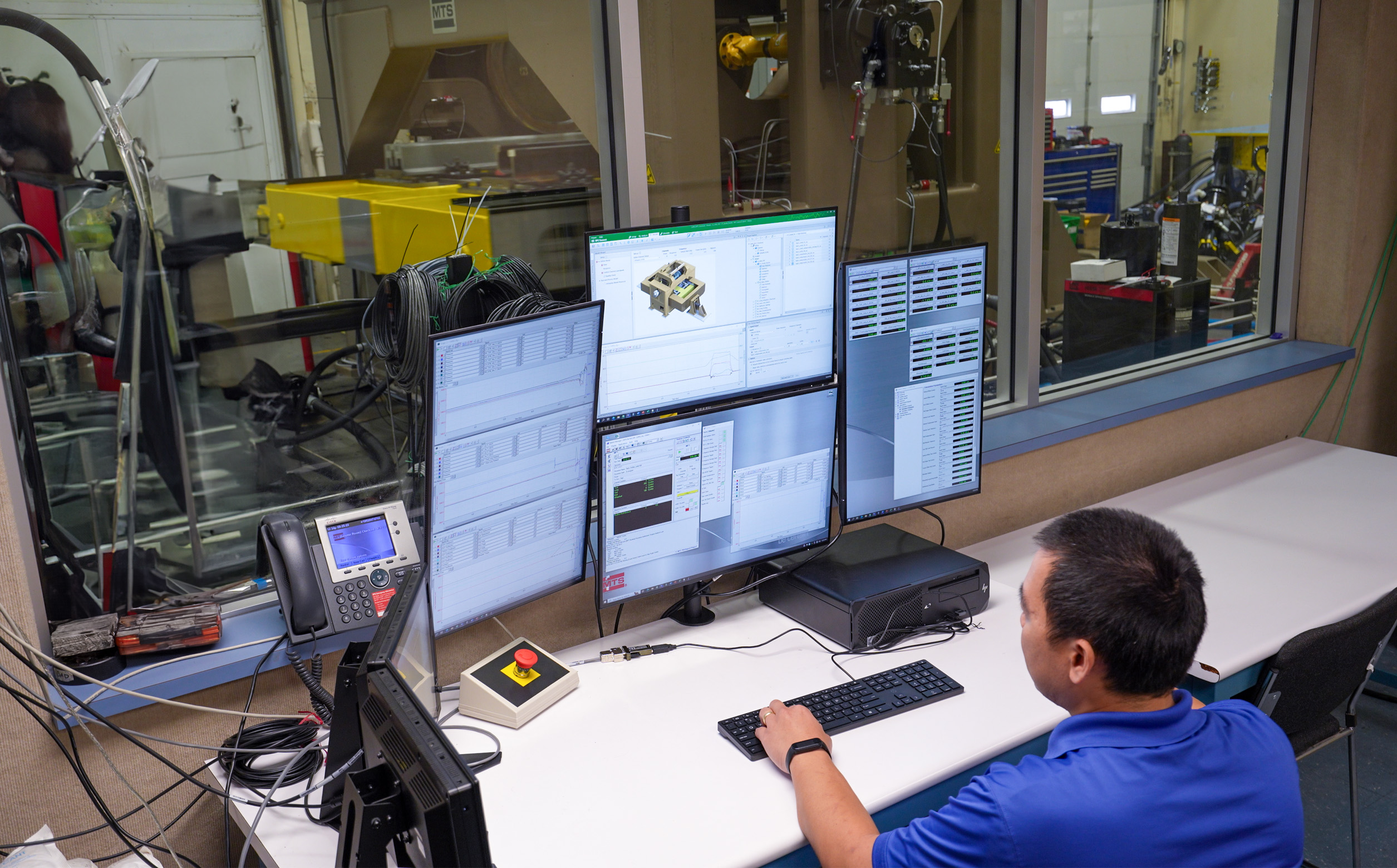 세계 최초의 MTS 롤링 접촉 피로 (RCF) 시스템은 레일 위에서 완전한 롤링 재고 바퀴 세트를 구동하여 표면 및 하위 표면 마모와 롤링 접촉 피로의 다른 측면을 재현하도록 설계되었습니다. 이러한 실험실 시뮬레이션에서 얻은 데이터는 엔지니어들이 레일과 바퀴 세트 성능, 손상 및 마모를 테스트하고, 컴퓨터 모델을 검증하며, 바퀴 세트와 레일의 수명 주기를 정확하게 예측하고, 다양한 재료와 기하학적 구조가 조향 및 내구성에 미치는 영향을 이해하며, 잠재적 위험과 유지보수 비용을 최소화하는 데 사용됩니다.